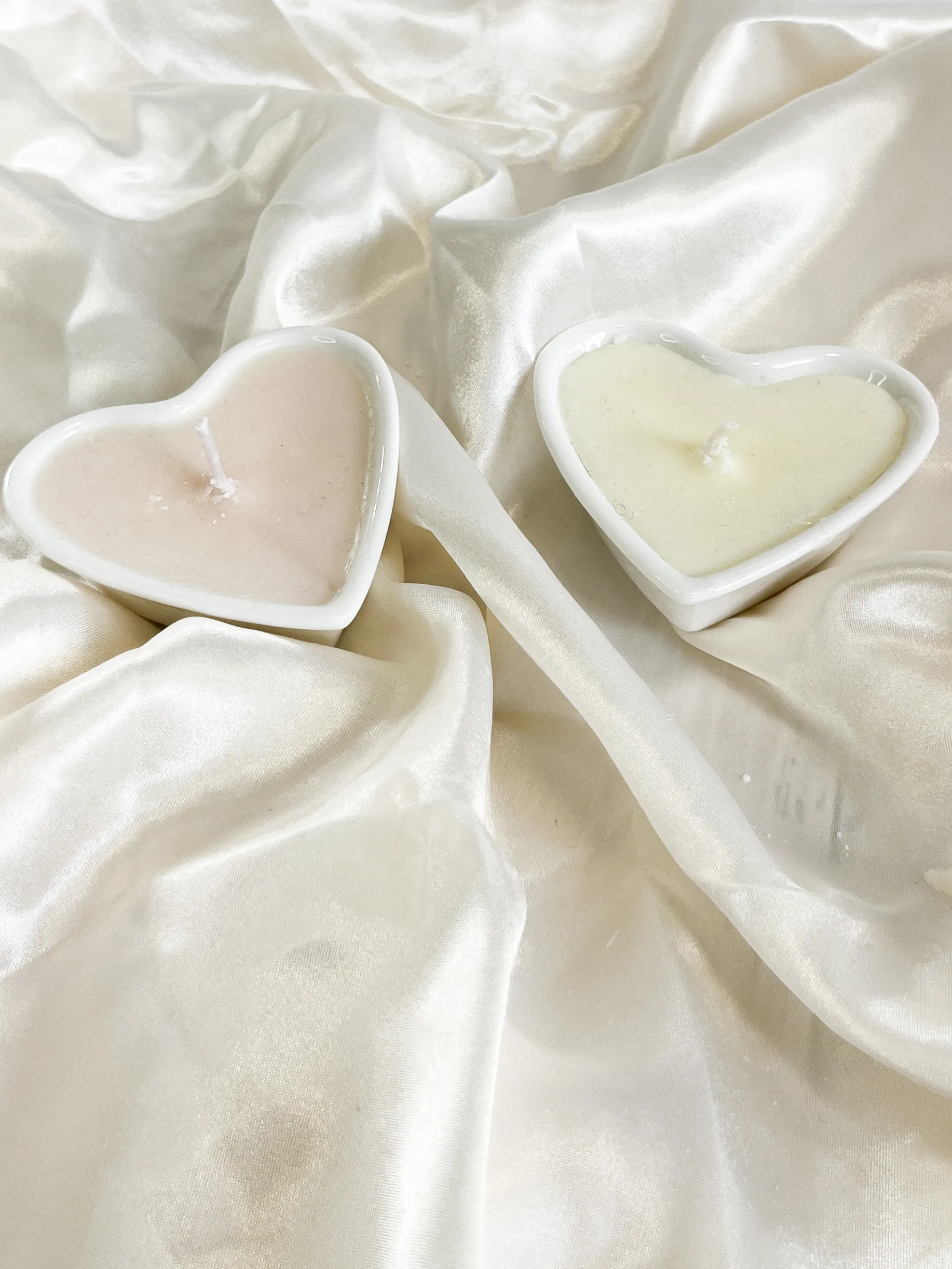 נר משעוות סויה בצורת לב, בצבע ורוד/לבן.